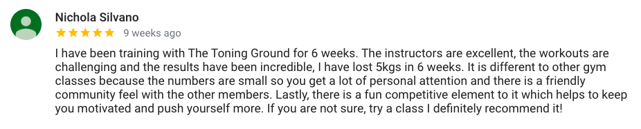 The Toning Ground is a Women's Only Private Studio in Loughton and South Woodford. We specialise in Small Group Training Workouts which are scientifically proven to help ladies burn fat, tone up, increase fitness and energy levels and get their mojo back! We have helped hundreds of ladies just like you to obtain their goals.